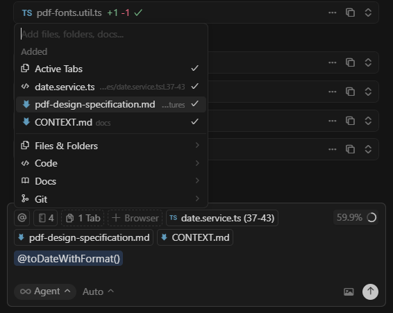 As a senior developer, I have completely lost control over the use of contextual tools and functions, such as previous chats, @methods(), quick context for better and more effective use with the model, even in the use of % context. Have you ever developed in Cursor with a large codebase ?