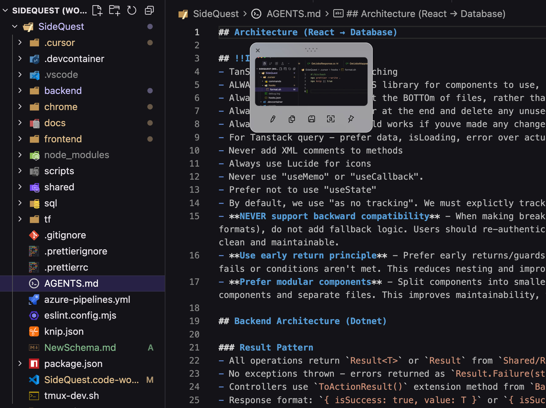 Then, in your instructions, ask the AI to always run “lint --fix” after finishing a task. If a warning or error shows up, the model will try to fix it. Don’t add unnecessary code styles to agents; use a linter for that. Or add rules and apply them intelligently or manually.