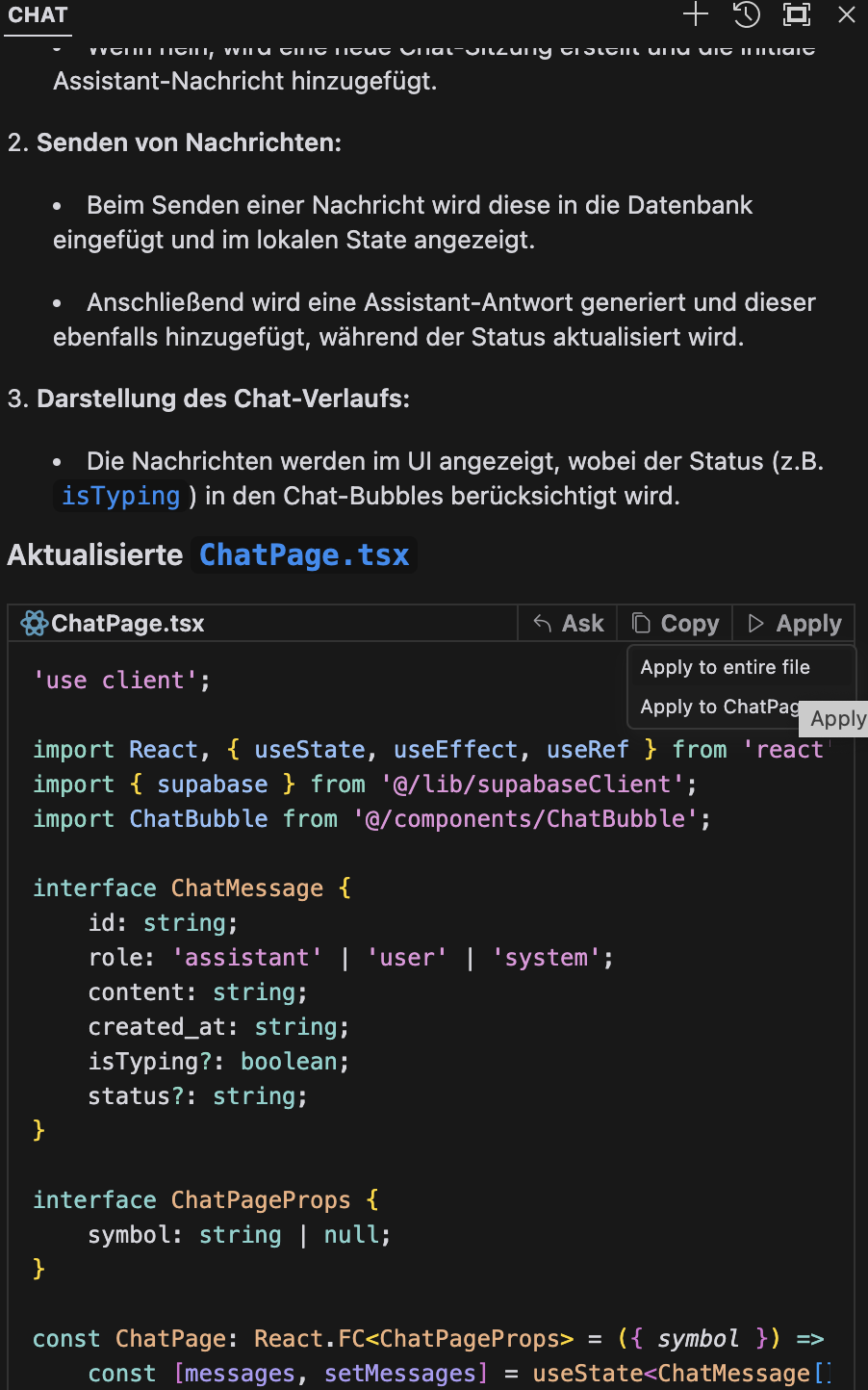 If I want to apply an answer from the LLM to the existing code it sometimes doesnt do anything at all.