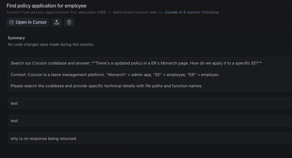 It’s worth mentioning that background agents seem quite unstable in general. See Agent is unable to use sudo due to no TTY and Background Agent Docker in Docker - #18 by someguynamedmike . It feels like a bit of a moving target trying to understand how they work and where they differ from the documentation. It’s understandable if this is an early and experimental feature subject to active churn, but if that’s the expectation I wish it would be communicated out. I’ve had several times now where I spend a fair amount of time configuring them and using them for a little bit only for them to break and have to configure again, trying to infer how they work now. A feature that should be pretty powerful is ending up in a net productivity loss