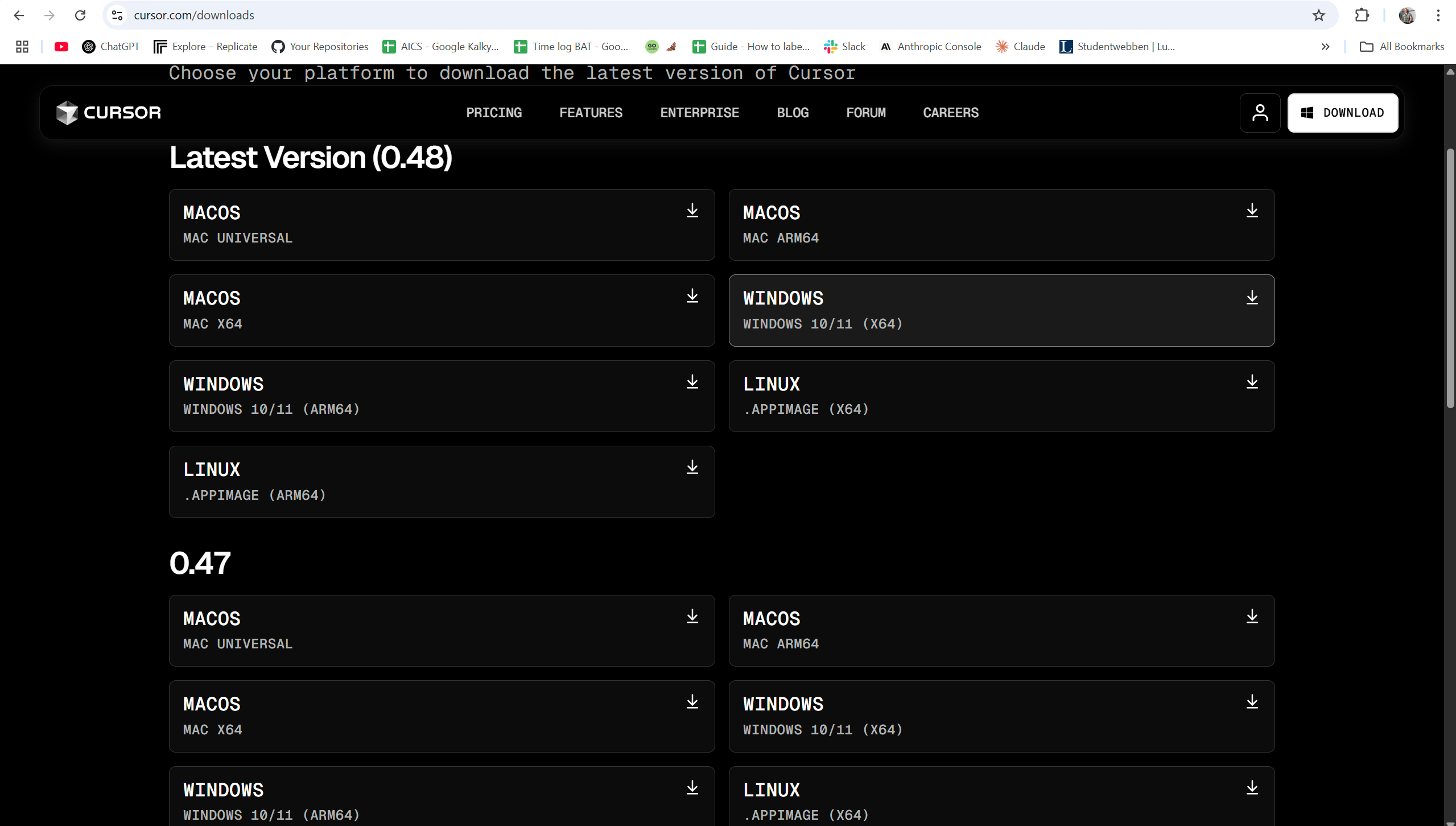 GitHub - oslook/cursor-ai-downloads: All Cursor AI's official download links for both the latest and older versions, making it easy for you to update, downgrade, and choose any version. 🚀 Hey, look here