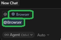Meanwhile, +browser was replaced with a clickable icon that exists only in Agents (as opposed to Editor):