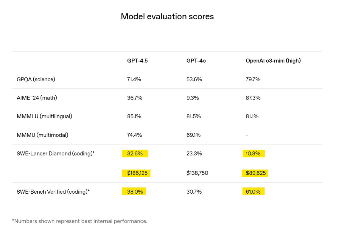 For anyone disappointed GPT 4.5 won’t be included with their subscriptions, we’re likely not missing much.
