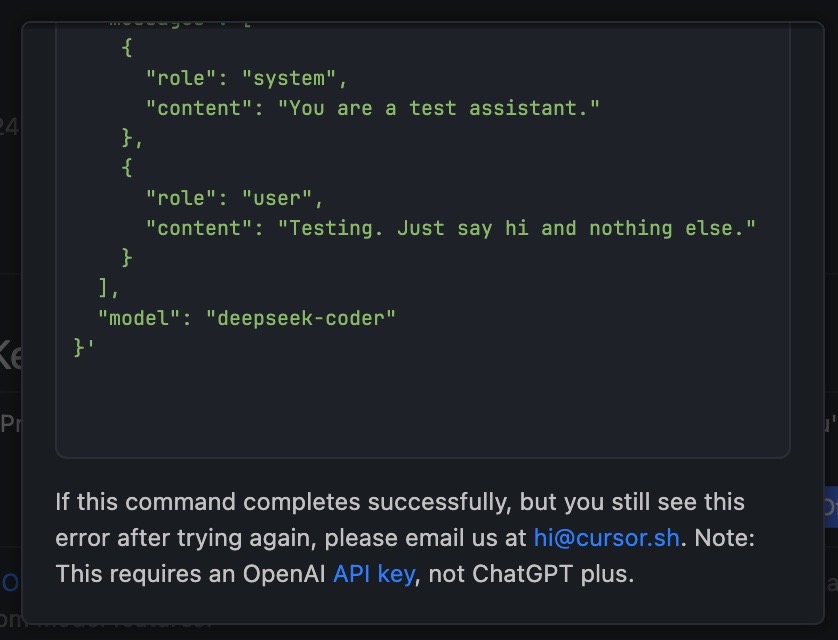 After adding DeepSeek API key and proper base URL (like https://api.deepseek.com/v1 or https://api.deepseek.com/beta or https://api.deepseek.com/) I can see that the API key is not saved, because verify in Cursor fails (but works if CURL code is executed manually in terminal). When I re-open settings, I can see that old OpenAI key is in Verify, so failed verify does not save DeepSeek API key ![]()