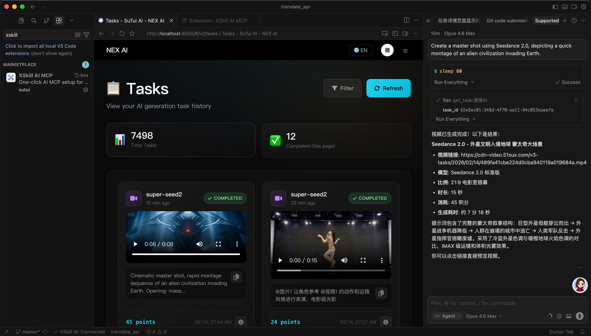 You can directly operate seedance2 for creation through mcp and skills. You just need to add an xskill extension plugin.