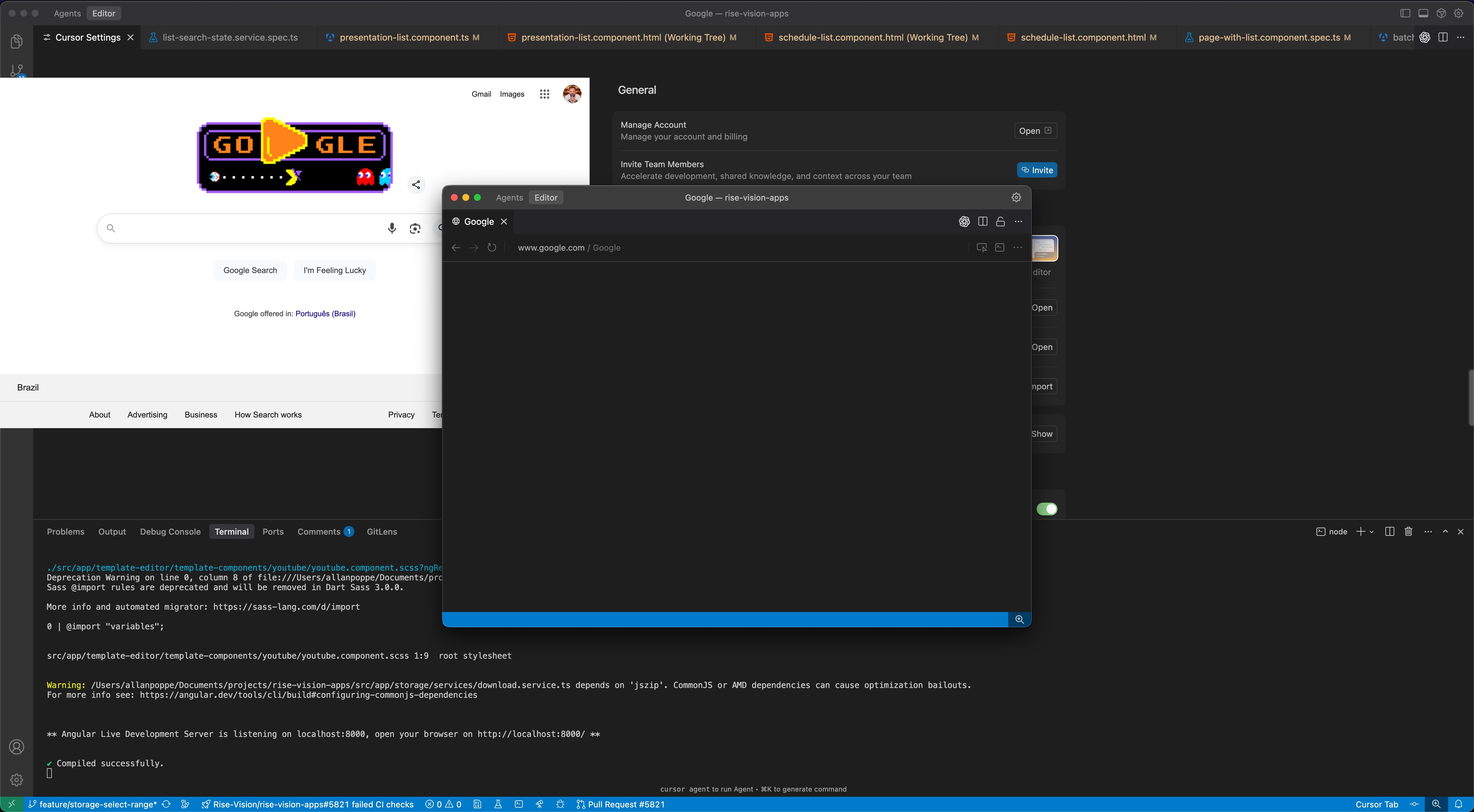 In Cursor editor, when the built-in browser panel is split into a separate window, the new window appears blank. Concurrently, the original browser content becomes fixed and floats on top of the editor viewport with the highest z-index, obstructing other UI elements.