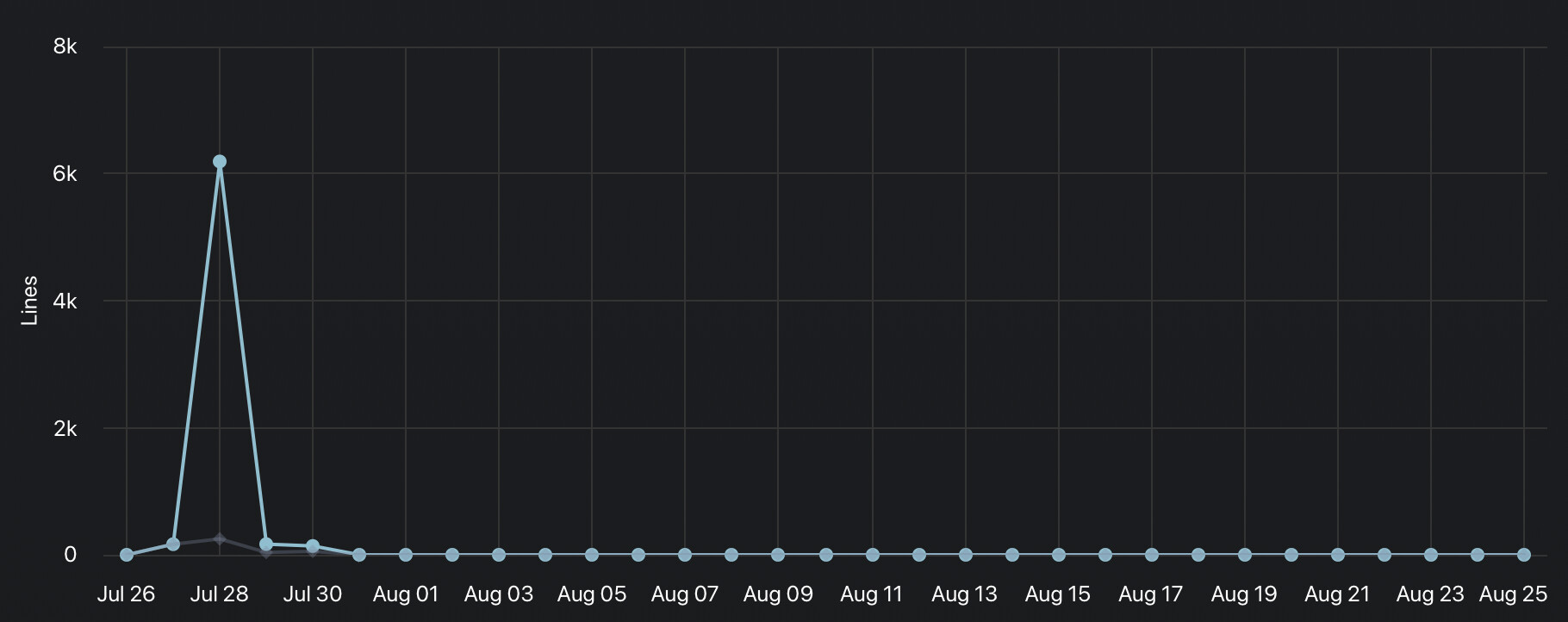 Similar situation here with ours, statred around 27th of July for us, 0 “lines of agent edit” tracked. Other metrics seem to be working but might also be impacted, hard to verify.