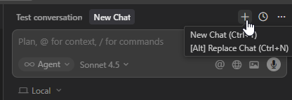 If hiding the Agents pane, there does not seem to be an easy way to create a new chat/agent. I have to hover over the right edge of the window perfectly for the Agents pane to reappear so I can click “New Agent”. Not easy when the Cursor window is not on the edge of the screen.