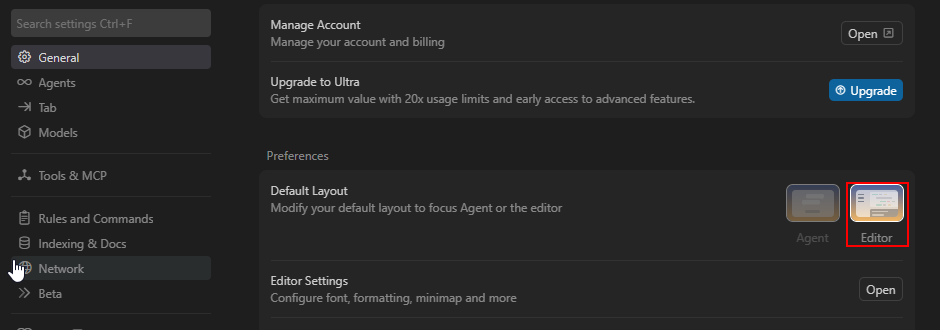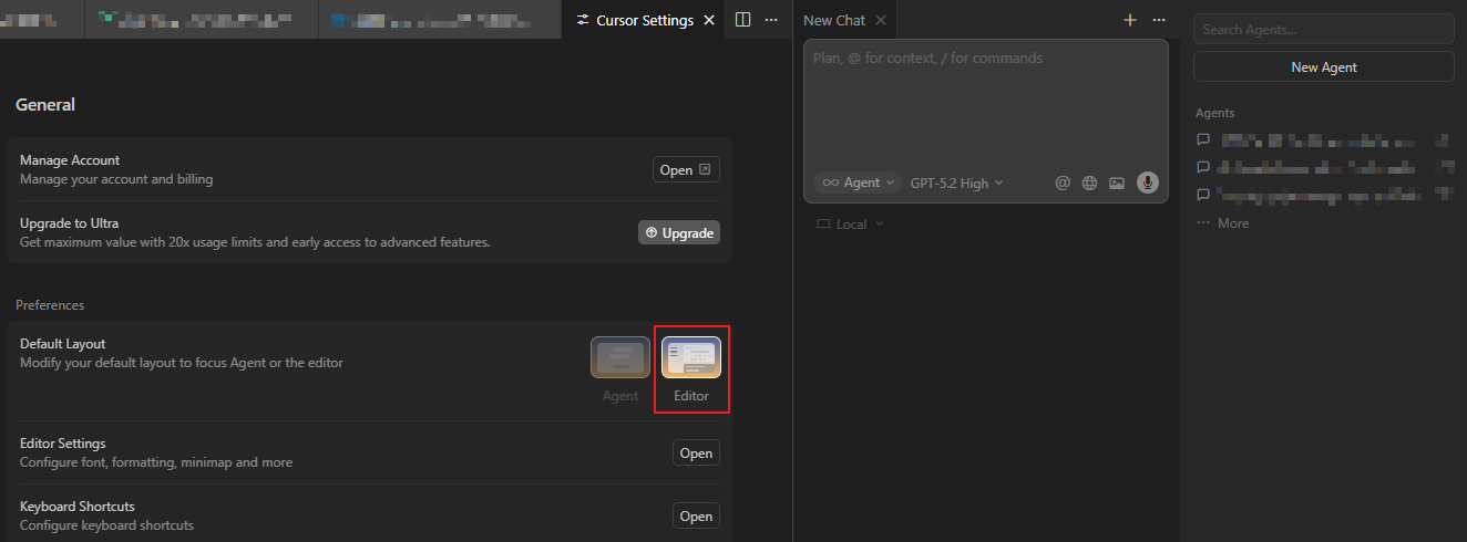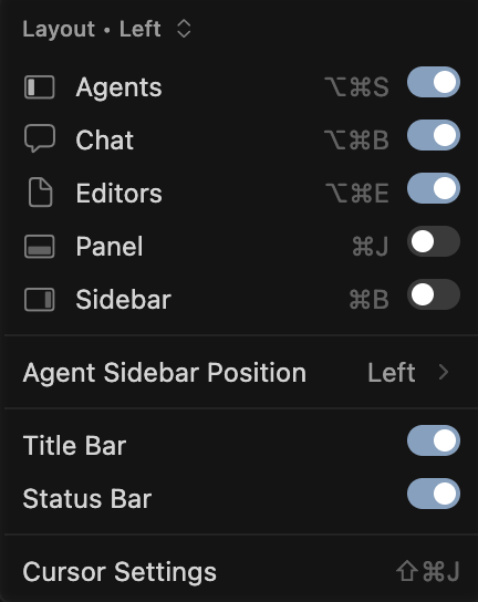 Closing the agents sidebar then makes it function very similar to Editor layout. Why even have different layouts (agents vs editor) if we can just choose which panels are open. That seems so much more straightforward then having “layouts”. Are people supposed to switch between layouts based on what they are doing? And still, we cant switch back to Editor (when using double arrows), so is Cursor going to get rid of the whole layout concept and just get everyone using the “Agent” layout where we can close the panes we don’t, which is fine as long as our UI settings are consistent after updates.