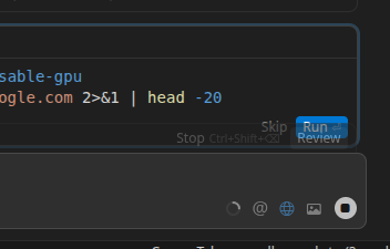 The generated command section in chat is behind the stop view and am at the end of scrolling. Clicking on run can accidentally click on stop button