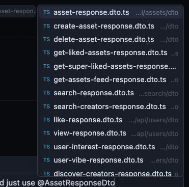 Many of my files have multiple types defined in them, so just being able to reference the whole file is insufficient to the specificity of my prompt and the necessary context.