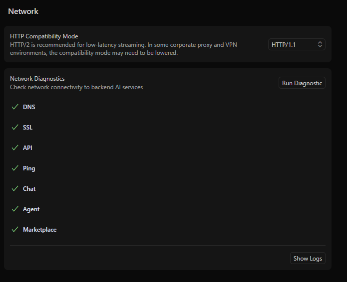 No issues found in local network (VPN disabled, firewall allows Cursor, browser works)