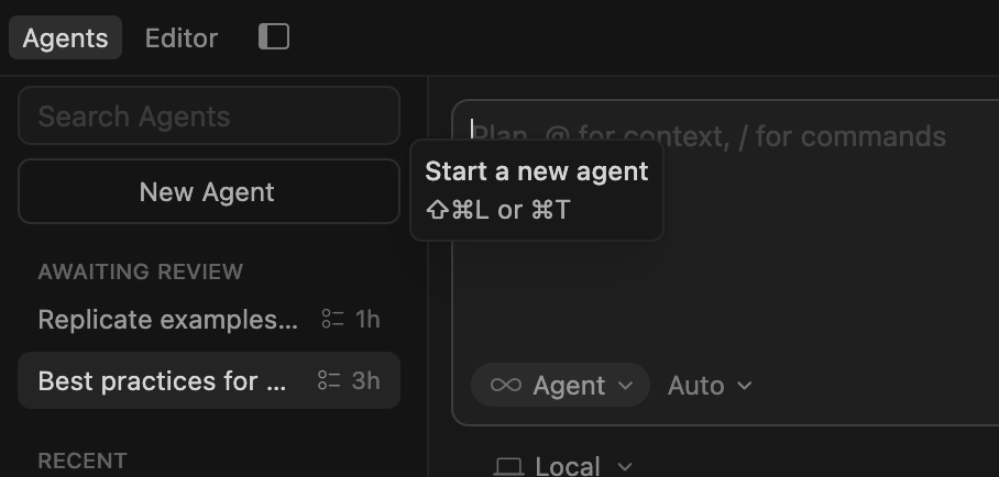 Cmd+I always opens Agent mode (shortcut for the side panel)