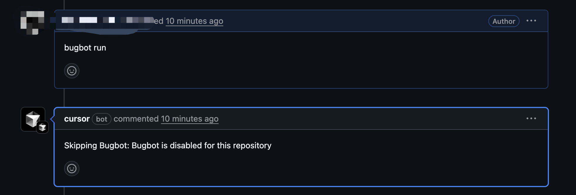 Getting error as “Skipping Bugbot: Bugbot is disabled for this repository”
