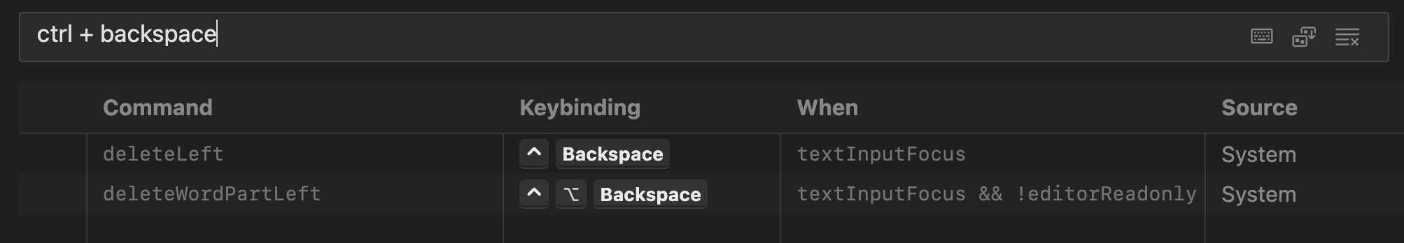 From some elusive moment, I started to notice that pressing Ctrl+Backspace in Cursor IDE, which is side by side installed fork of VS Code, leads to erasing word in text editor even if I’m focused on find field or global search field or command pallete or whatever I can focus.