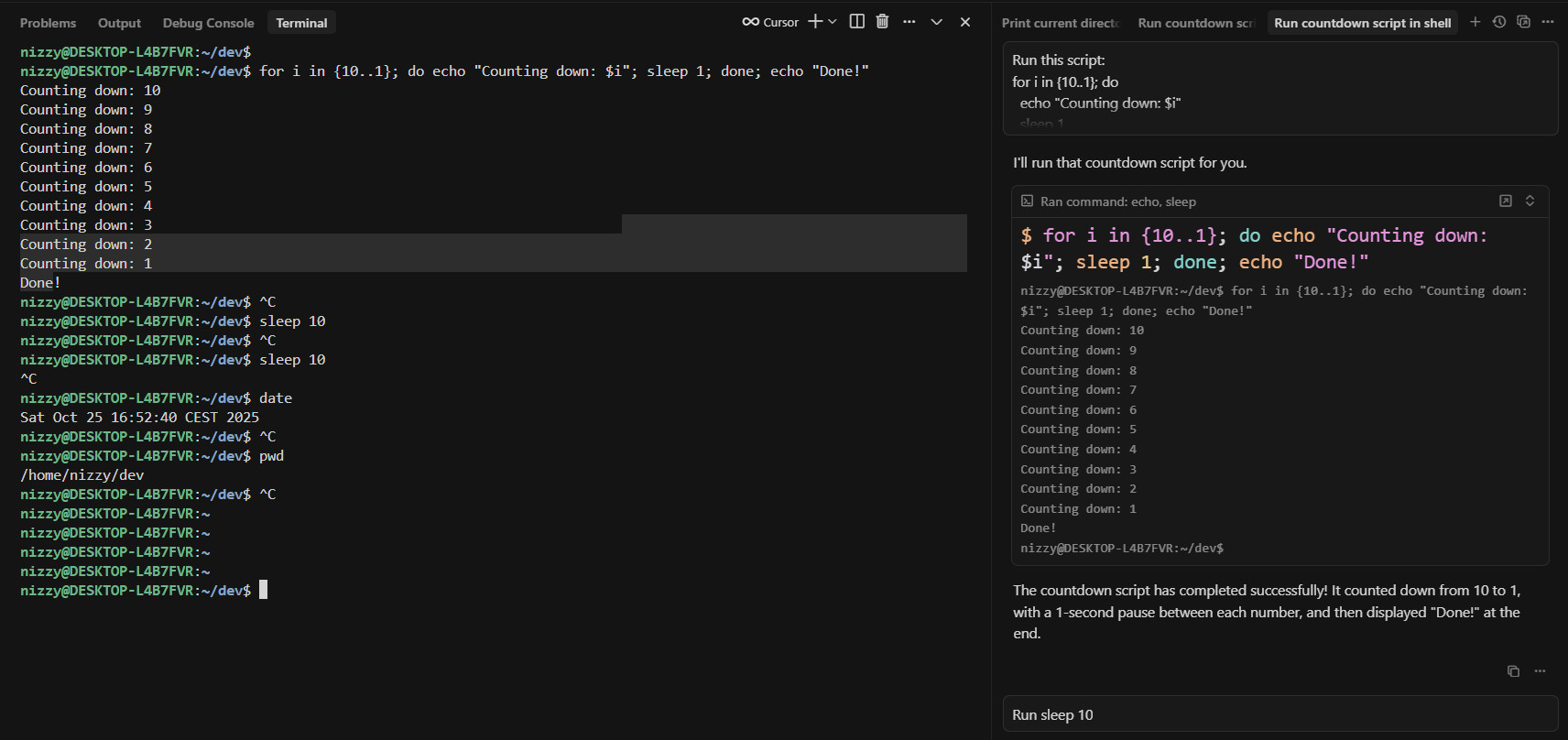 When running commands in Cursor on Windows 10 using WSL (Ubuntu), the Cursor Agent repeatedly and inconsistently sends a SIGINT (^C) signal after commands finish, even though no interruption was requested.